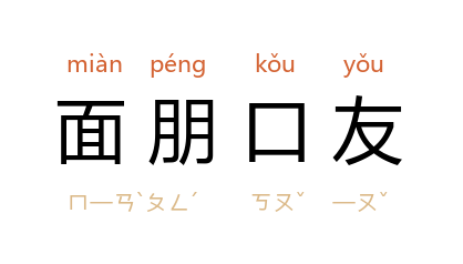 引清 和邦额 《夜谭随录·崔秀才》:“刘 拊髀叹曰:‘面朋口友,固不足怪。欲明通财之义,非道义之交不可。’”清 和邦额 《夜谭随录·崔秀才》:“閒斋 曰:‘戔戔之俗,万变千更,交固不易言也。方其盛也,面朋口友,不招自来。’”