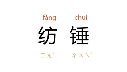 ⒈ 一种纺纱的工具。古代用瓦制,以后有用铁、木或牛骨等做的。纺锤两端尖,中间粗,把棉絮条或棉纱的一端固定在上面,通过纺锤的旋转,就可以纺成纱或线。
