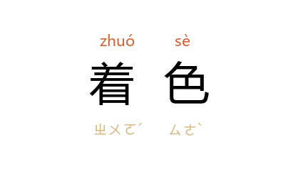 涂上颜色。 《红楼梦》第四二回:“就是颜色,只有赭石、广花、藤黄、胭脂这四样。再有不过是两支着色的笔就完了。”
