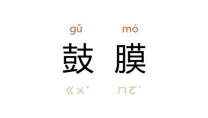 ⒈ 外耳与中耳间的传音膜。膜薄且呈卵圆形,声波震动鼓膜后,使听骨发生振动,进而产生听觉。