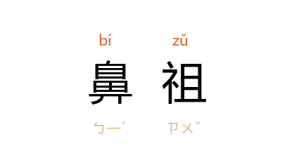 引明·张自烈《正字通·鼻部》:「人之胚胎,鼻先受形,故谓始祖为鼻祖。」