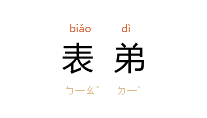 ⒈ 称谓。用来称呼姑妈、姨妈、舅舅的儿子,且年纪比自己小。