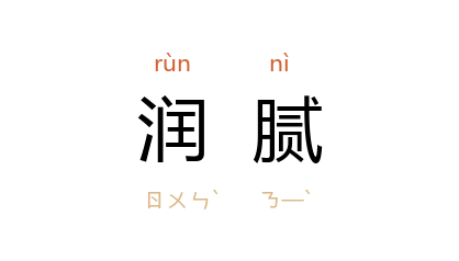 引宋 乐史 《杨太真外传》卷下:“上皇发囊,且曰:‘此瑞龙脑香也,吾曾施於暖池玉莲朶,再幸尚有香气宛然。况乎丝缕润腻之物哉。’”清 葆光子 《物妖志·石》:“墙侧有捣衣石一片,洁白润腻,人尝坐之。”柔石 《二月》四:“柔白的脸孔,这时两颊起了红色,润腻的、光洁的。”