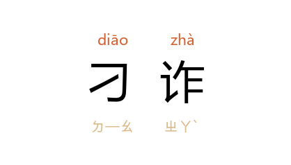 引明 何良俊 《四友斋丛说·史三》:“刁诈之徒禁之犹恐不缉,况导之使然耶?今刁诈得志,人皆效尤。”《文明小史》第五三回:“有一个 江浦县 的乡董,叫做 王明耀 的,为人刁诈,地方上百姓怕得他如狼似虎。”《天雨花》第十一回:“仪贞 大怒开言駡,反来刁诈血喷人。”吴晗 《论海瑞》:“说 海瑞 只养得些刁诈之人。”
