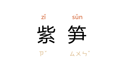 引唐 白居易 《题周皓大夫新亭子二十二韵》:“茶香飘紫笋,膾缕落红鳞。”宋 苏轼 《宿临安净土寺》诗:“觉来烹石泉,紫笋发轻乳。”宋 陆游 有《病酒新愈独卧苹风阁戏书》诗,自注:“紫笋, 蒙 顶之上者,其味尤重。”元 冯子振 《鹦鹉曲·顾渚紫笋》曲:“一枪旗,紫笋灵芽,摘得和烟和雨。”