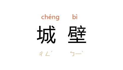 引《新五代史·杂传·李仁福》:“夏州 城壁素坚,故老传言 赫连勃勃 蒸土筑之, 从进 等穴地道,至城下坚如铁石,凿不能入。”宋 岳飞 《奏画守襄阳等郡营田札子》:“苟岁月迁延,使得修治城壁添兵聚粮而后取之,必倍费力。”宋 陈亮 《与王季海丞相书》:“边陲之急慢,粮草之虚实,兵卒之强弱,城壁之坚脆,歷歷在目,朗然在心。”