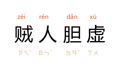 引《红楼梦·第七一回》:「这本是鸳鸯戏语,叫他出来。谁知他贼人胆虚,只当鸳鸯已看见他的首尾了,生恐叫喊起来。」《官场现形记·第三二回》:「王小五子见余荩臣生了疑心,毕竟他自己贼人胆虚,亦不敢撒娇撒痴。」