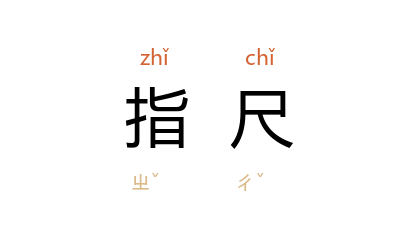 ⒈ 古时以中指中节的长度为一寸,十寸为尺,以指为度而量,故称指尺。度量,衡鉴。