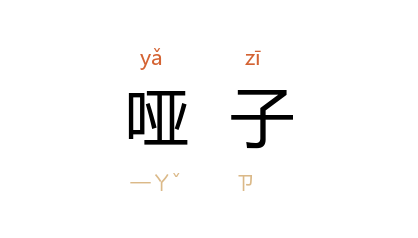 引元 郑廷玉 《后庭花》第一折:“有个孩儿唤做 福童,是个哑子,不会説话。”郭沫若 《苏联纪行·六月廿二日》:“一生菜,一汤,一牛排,一冰其凌。--哑子旅行的喜剧。”