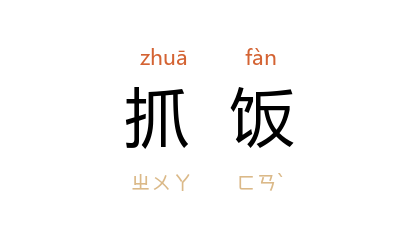 ⒈ 维吾尔、乌孜别克等族的传统饭食。流行于新疆等地。用大米、羊肉、羊油或青油、胡萝卜、洋葱、葡萄干等,经炸、炒、煮、焖等工序制成的甜味饭。进餐时,盛入盘内,大家围坐抓食,故称。