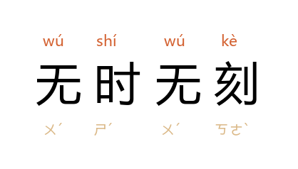 ⒈ 没有时刻。常与否定词连用,指时时刻刻、随时的意思。