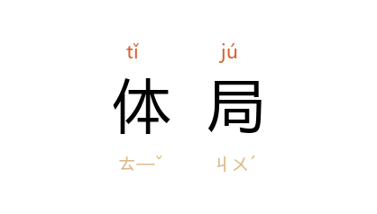 引《宋书·柳元景传》:“南豫州 刺史 元景,风度弘简,体局深沉,正义亮时,恭素范物。”《旧唐书·张行成传》:“张子 体局方正,廊庙才也。”《快心编三集》第三回:“看 兰英 恁般标緻,又有体局。”