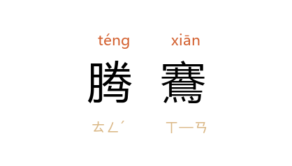 引唐 韩愈 《和侯协律咏笋》:“得时方张王,挟势欲腾鶱。”宋 洪迈 《容斋五笔·骞鶱二字义训》:“鶱,虚言切,飞貌。”明 顾梦游 《焦山纪游》诗:“直上转苍翠,云际犹吐吞,遂振所携策,登顿若腾鶱。”