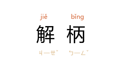 引清 沉近思 《宋论》:“吾知即悬首於虏廷矣,又何能俟克中原,迎二帝,然后还戈解柄,以自明其心跡也哉!”周善培 《致陈子玄书》:“吾与 周君 皆 浙 人,所以排难冒险劝 赵公 解柄,使 四川 独立者,乃持人道主义,不欲 川 人多流血耳。”