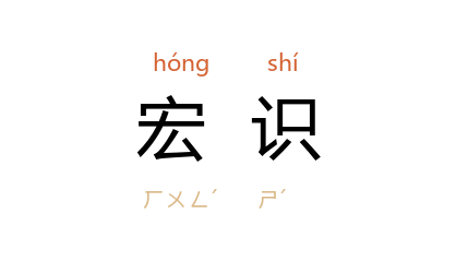 引宋 王安石 《上邵学士书》:“今 乐安公 懿文茂行,超越朝右,復得足下以宏识清议,相须光润。”明 李贽 《答耿中丞论谈》:“故达人宏识,一见 虞 廷揖让,便与三盃酒齐观;巍巍 尧 舜 事业,便与太虚空浮云并寿。”
