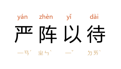 ⒈ 亦作“严陈以待”。谓以严整的阵势,等待着敌人进犯,予以打击。