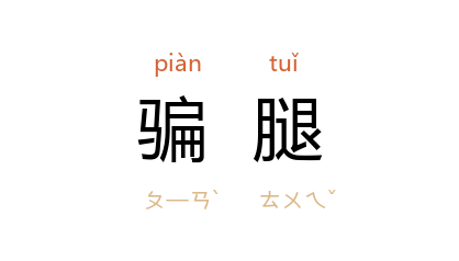 引《十月》1981年第5期:“他把办公室锁好,下了办公楼,一骗腿骑上自行车,往 郑子云 家里,飞驰而走。”