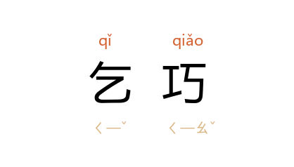 ⒈ 相传阴历七月七日为牵牛、织女二星相会之期,旧俗妇女此夕必备陈瓜果、鲜花、胭脂于庭中向天祭拜,以期拥有姣美的面貌;并对月引线穿针,以期双手灵巧,长于刺绣织布,称为「乞巧」。南朝梁·宗懔也作「祈巧」。