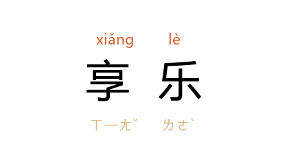 引宋 袁褧 《枫窗小牍》卷下:“享乐寿考,妻儿满前。”丁玲 《梦珂》:“这欣赏,这趣味,都是一种‘高尚’的,细腻的享乐。”