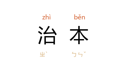 ⒉ 谓处理事务从根本上着手。与“治标”相对。参见“治标”。