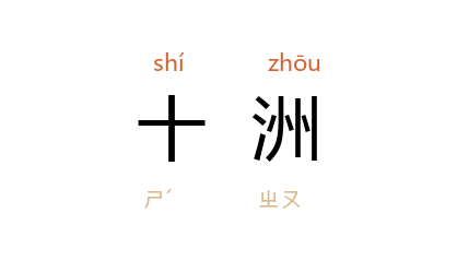 引《海内十洲记》:“汉武帝 既闻 王母 説八方巨海之中有 祖洲、瀛洲、玄洲、炎洲、长洲、元洲、流洲、生洲、凤麟洲、聚窟洲。有此十洲,乃人跡所稀絶处。”
