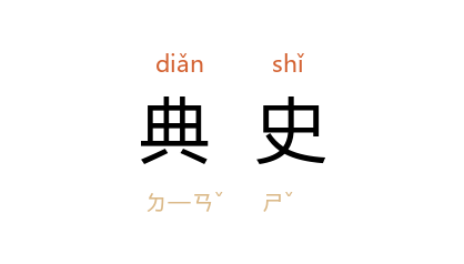 ⒉ 官名。元始置,明清沿置,为知县下掌管缉捕、监狱的属官。如无县丞、主簿,则典史兼领其职。