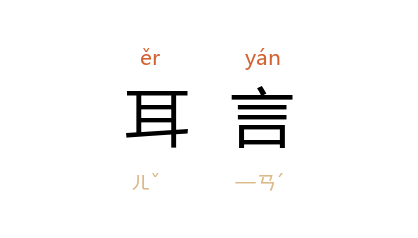 引唐 韩愈 《吊武侍御所画佛文》:“晢晢兮目存,丁寧兮耳言,忽不见兮不闻,莽谁穷兮本源!”《旧唐书·姚绍之传》:“仲之、延庆 言曰:‘宰相中有附会 三思 者。’ 嶠 与 承嘉 耳言,復説诱 绍之,其事乃变。”