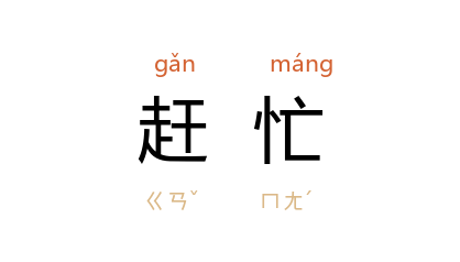 引《红楼梦》第五十回:“我赶忙问了那姑子,果然不错。”《孽海花》第四回:“我这里也赶忙追进城去,找俺爸爸想法子去。”魏巍 《东方》第五部第六章:“吓得敌人又赶忙钻回到地堡里。”