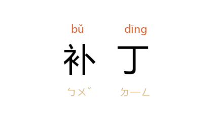 ⒈ 亦作“补帄”。亦作“补钉”。补在破损的衣服或物件上的东西。