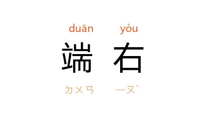 引晋 葛洪 《抱朴子·汉过》:“当涂端右阉官之徒,操弄神器,秉国之钧,废正兴邪,残仁害义。”《周书·赵善传》:“虽位居端右,而逾自谦退。”《隋书·赵煚赵芬等传论》:“二 赵 明习故事,当世所推;及居端右,无闻殊绩。”《资治通鉴·晋简文帝成安二年》:“元相之重,储傅之尊,端右事繁,京牧任大。”胡三省 注:“端右,尚书令也。”