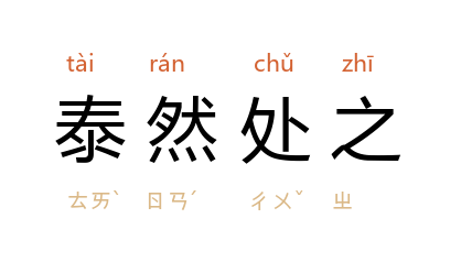 ⒈ 遇到事情时,态度镇定,神色安恬自若。也作「泰然居之@@@处之泰然」。