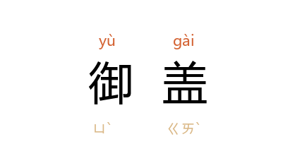 引《后汉书·祭遵传》:“时 遵 有疾,詔赐董茵,覆以御盖。復令进屯 陇 下。”南朝 梁 刘孝威 《半渡溪》诗:“入营陈御盖,还家乘紫车。皇恩知已重,丹心恨不紓。”清 昭槤 《啸亭杂录·内务府定制》:“凡御盖:皇上御殿,设绣盖;巡幸卤簿,设黄罗销金九龙三檐曲柄伞盖。”