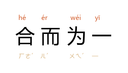 引《史记·春申君列传》:“秦 楚 合而为一以临 韩,韩 必敛手。”明 何良俊 《四友斋丛说·史五》:“且谓 李林甫 之蜜口剑腹, 贾似道 之牢笼言路,合而为一,其患可胜道哉?”清 和邦额 《夜谭随录·佟觭角》:“两胸相撞,竟与己合而为一。”《老残游记》第十回:“如两人同弹此曲,则彼此宫商皆合而为一。”