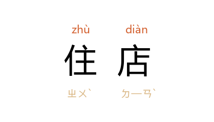 引《儿女英雄传》第二三回:“早有 安老爷 迎着问了问昨日住店的光景。”《小五义》第三二回:“里边婆子答应:‘哟,干什么的?’外边答道:‘住店的。’”周信芳 《四进士》第十四场:“宋士杰 (念):‘ 孟尝 君子店,千里客来投。二位公差莫非住店吗?’”