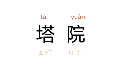 引《法苑珠林》卷五十:“佛塔高显处作,不得塔院内浣染晒衣唾地。”唐 贾岛 《哭柏岩禅师》诗:“塔院关松雪,经房鏁隙尘。”《初刻拍案惊奇》卷四:“却是他与朋儕作戏,取来掛在 慈恩寺 塔院相轮上面。”