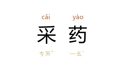 ⒈ 见“采药”。亦作“采葯”。谓采集药物。亦指隐居避世或求仙修道。