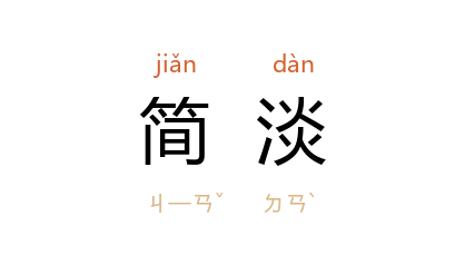 引《南史·谢弘微传》:“弘微 与 琅邪 王惠、王球 并以简淡称。”宋 陆游 《幽兴》诗:“身闲诗简淡,心静梦和平。”《明史·都胜传》:“歷任五十七年,所处皆膏腴地,而自奉简淡,日食止豆腐,时因以为号。”