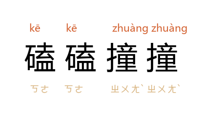 引《二刻拍案惊奇》卷三五:“﹝ 程老儿 ﹞磕磕撞撞,撞到粪场边来,走至楼窗下面,咳嗽一声。”赵树理 《三里湾·忌生人》:“糊涂涂 虽然心里有事睡不着,只是上了几岁年纪,半夜三更不想磕磕撞撞出来活动。”
