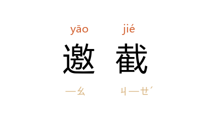 引元 无名氏 《飞刀对箭》第一折:“将各处进贡,都邀截了。”《西游记》第九七回:“又见行李沉重,白马快走,人心不足,故又来邀截。”