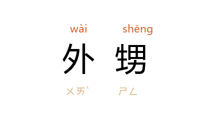 ⒈ 姐或妺的儿子。某些地区亦称外孙为外甥。按,亦作外生。参见“外甥女”。