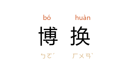 引元·无名氏《陈州粜米·第二折》:「我须是笔尖上挣䦷来的千钟禄,你可甚剑锋头博换来的万户侯。」明·高明《琵琶记·蔡公逼伯喈赴试》:「忍将父母饥寒死,博换得孩儿名利归。」