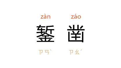 引北魏 郦道元 《水经注·江水一》:“山道广丈餘,深三四丈,其鏨凿之迹犹存。”《警世通言·金令史美婢酬秀童》:“果听得间壁槌凿之声……晚间与二人相遇问道:‘你家常常鏨凿什么东西?’”《豆棚闲话·渔阳道刘健儿试马》第九则:“把厨灶下埋着当日剩下两个元寳,悄悄乘着月夜掘出,将些炭火烧红,鏨凿开来。”