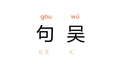 ⒈ 句,吴语的发声辞。句吴,国名,指吴国。