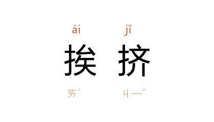例如:「她在公车上挨挤,眼镜挤丢了。」