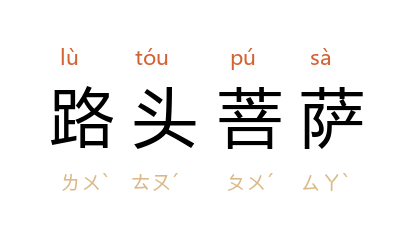 引清 李玉 《人兽关·园中掘藏》:“[丑寻介]路头菩萨,那里去了?”亦省称“路头”。 《何典》第三回:“明日还要把小炒肉烧烧路头。”