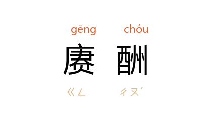引宋·张耒〈偶作〉诗:「赖有西邻诗句好,赓酬终日自忘饥。」