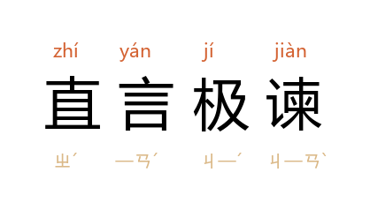 ⒈ 谓以正直的言论谏诤。古时多用于臣下对君主。直言极谏科的省称。