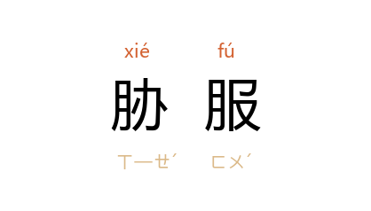 引晋 袁宏 《后汉纪·明帝纪下》:“上使越骑司马 郑众 使 匈奴,单于欲令 众 拜, 众 不为之屈。单于围守 众,欲胁服之。”明 沉德符 《野获编补遗·土司·缅甸盛衰始末》:“缅 自此復盛, 瑞体 已并有 古喇,因以兵胁服邻国。”清 魏源 《圣武记》卷一:“又胁服 张光璧、马进忠 之众。”郭沫若 《我的童年》第二篇四:“但是那 帅先生 却被老学生们胁服了。”