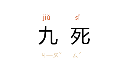 引《文选·<楚辞·离骚>》:“亦余心之所善兮,虽九死其犹未悔。”刘良 注:“九,数之极也,言……虽九死无一生,未足悔恨。”《后汉书·冯衍传下》:“虽九死而不眠兮,恐餘殃之有再。”《宋史·赵鼎传》:“白首何归,悵餘生之无几;丹心未泯,誓九死以不移。”
