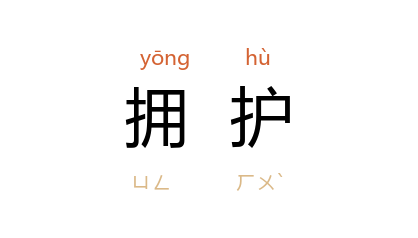 ⒋ 对制度、党派、领袖、政策等表示赞成支持。